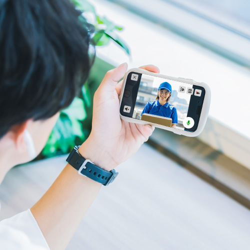 お子様の帰宅時にスマホへ通知します!カメラ越しに会話も可能です。クリアな映像と音声で、スムーズなコミュニケー ションができます。